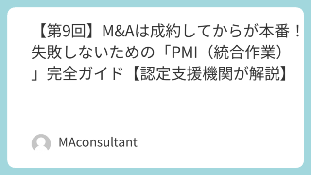 M&A基礎知識 【第9回】M&Aは成約してからが本番!失敗しないための「PMI(統合作業)」完全ガイド【認定支援機関が解説】