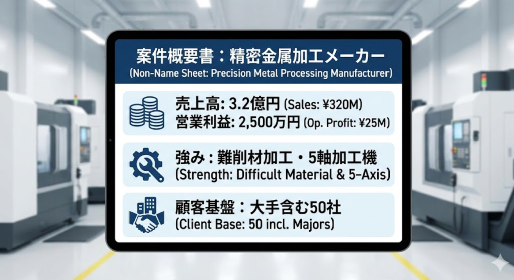 具体的に、「年商3億円規模の金属部品加工メーカー(製造業)」の譲渡案件を例に、ノンネームシートの書き方を比較してみましょう。